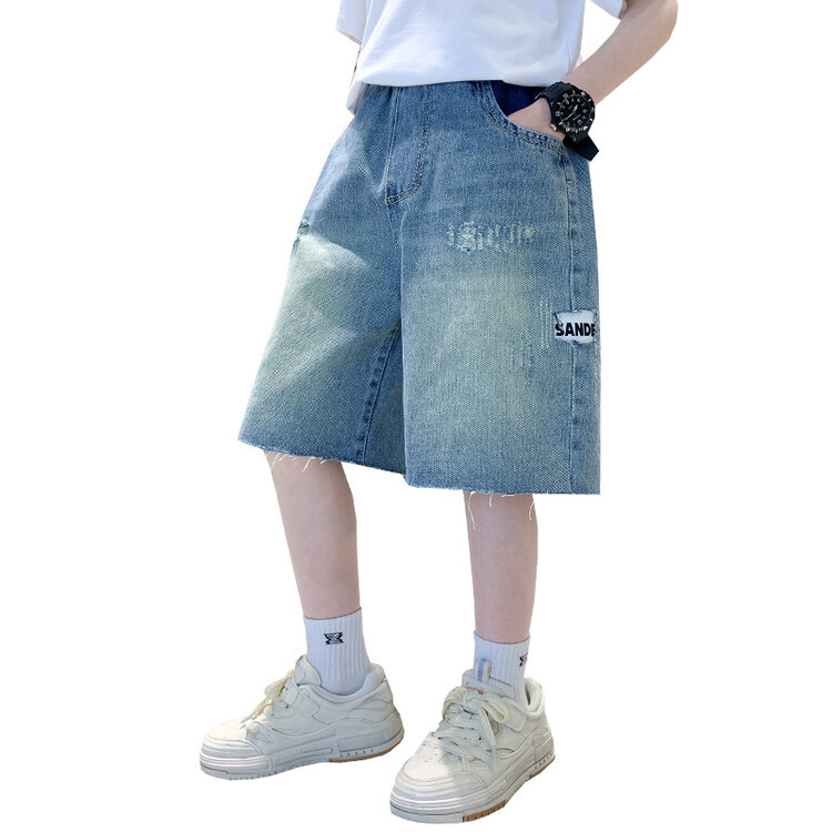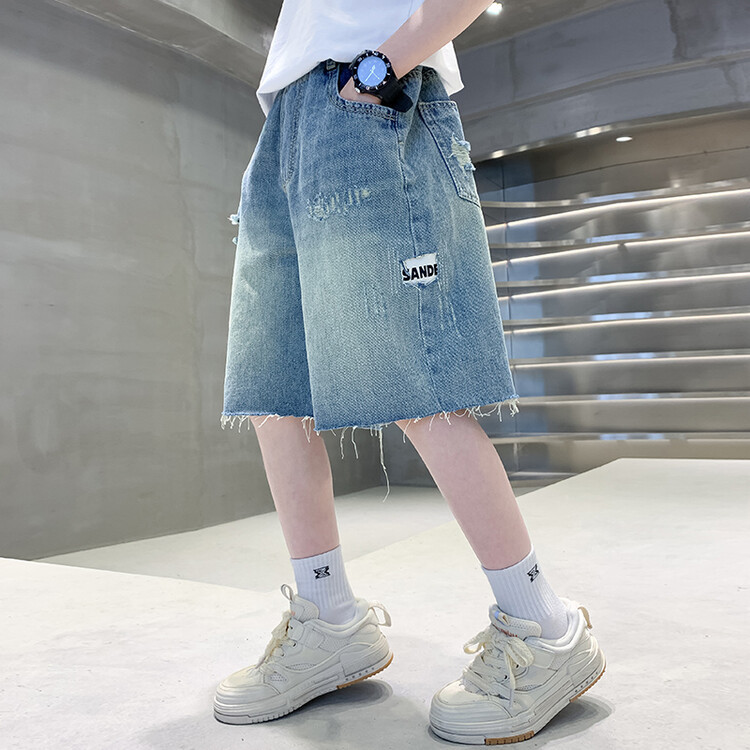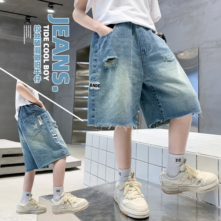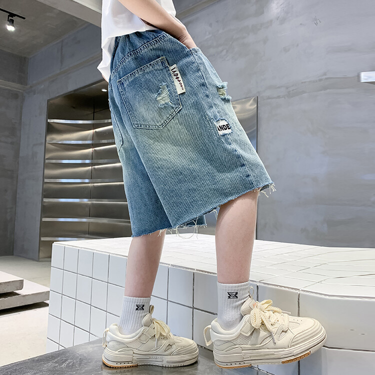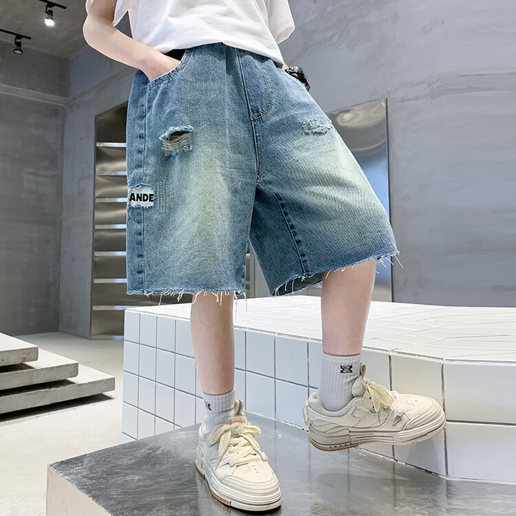 宽松牛仔男童短裤夏季新童装儿童中大男童破洞中五分童裤
