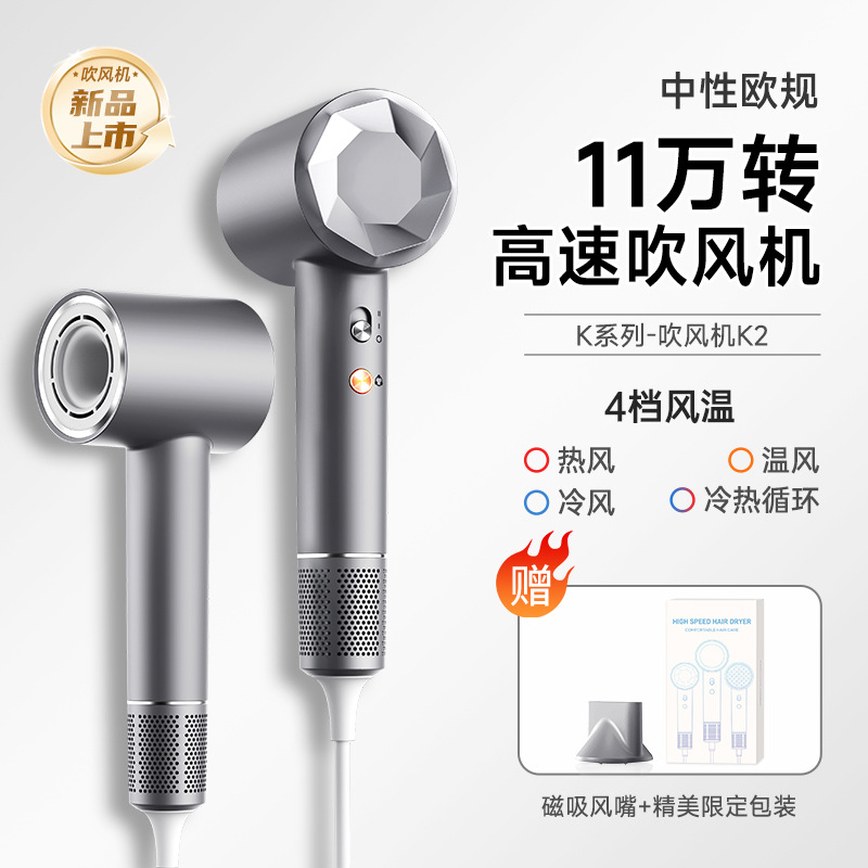中性【欧规】K2-11万转-无刷电机-按键风温灯-磁吸风嘴-灰色