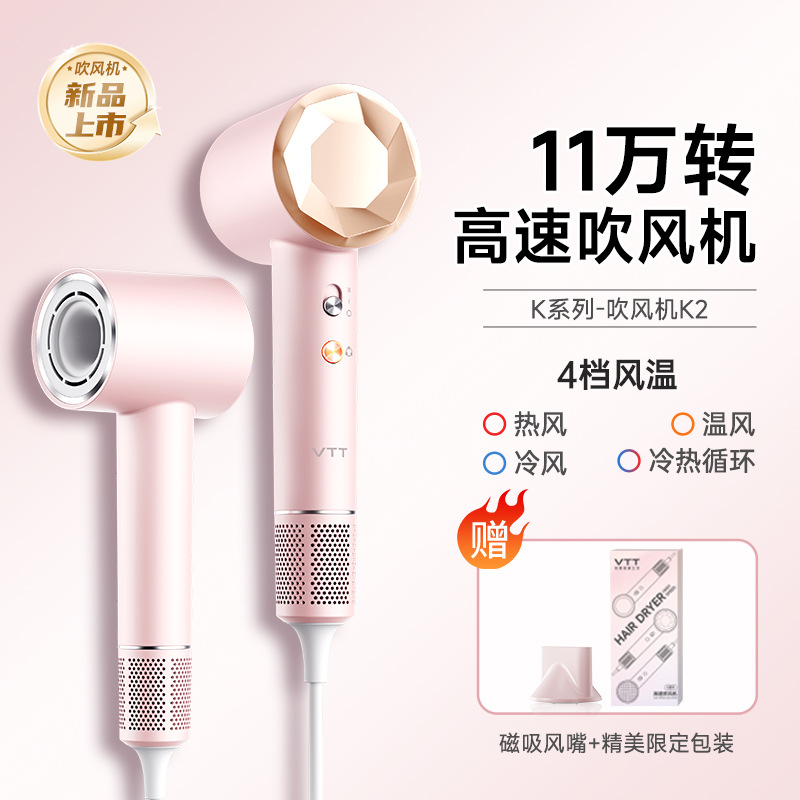 【新款】国标K2-11万转-无刷电机-按键风温灯-磁吸风嘴-粉色
