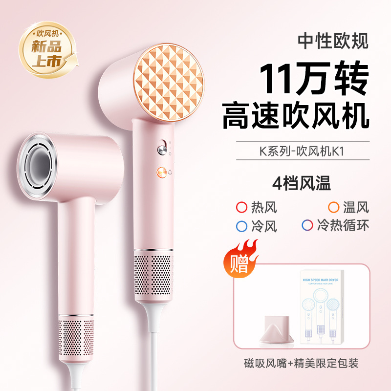 中性【欧规】K1-11万转-无刷电机-按键风温灯-磁吸风嘴-粉色