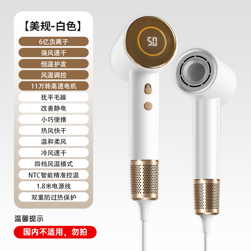 中性【美规】D3无暇白-11万高速电机-负离子-风温数显屏-三色灯环--3档位