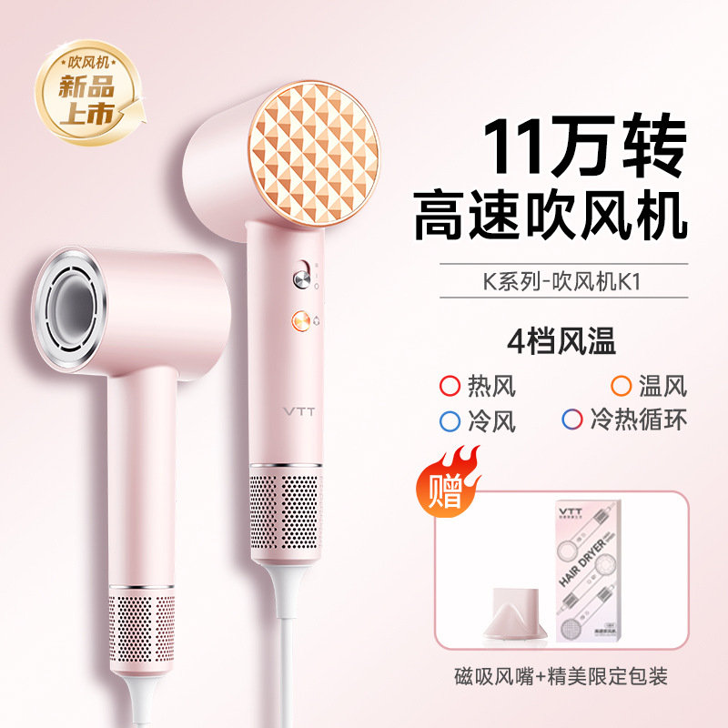 【新款】国标K1-11万转-无刷电机-按键风温灯-磁吸风嘴-粉色