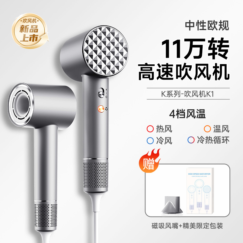 中性【欧规】K1-11万转-无刷电机-按键风温灯-磁吸风嘴-灰色