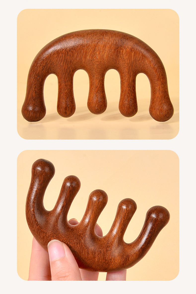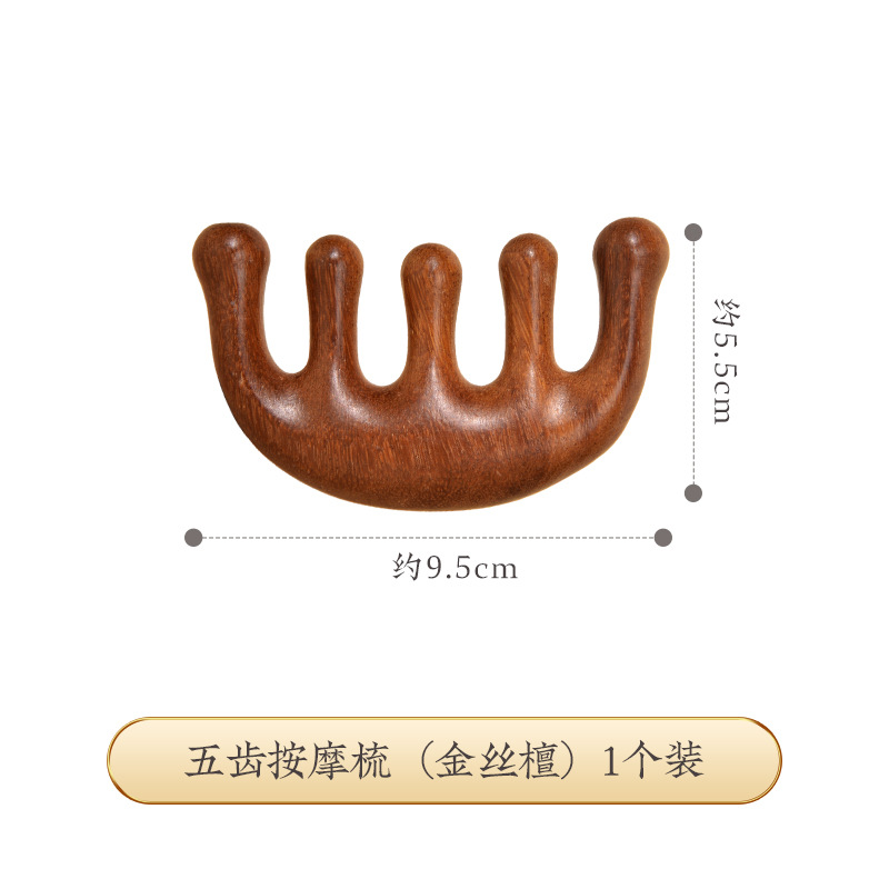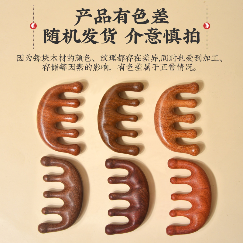 按摩梳子头部经絡梳檀木梳 金丝檀五齿梳头皮头疗神器经络按摩梳