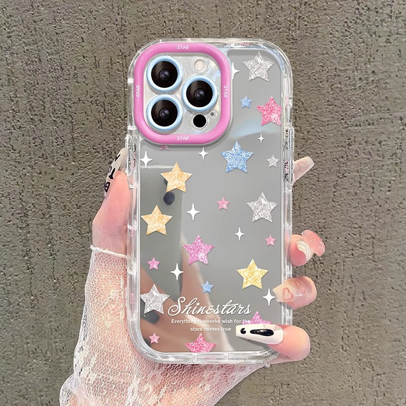 ins风星星适用苹果16手机壳iphone15promax镜面14高级感13透明7/8