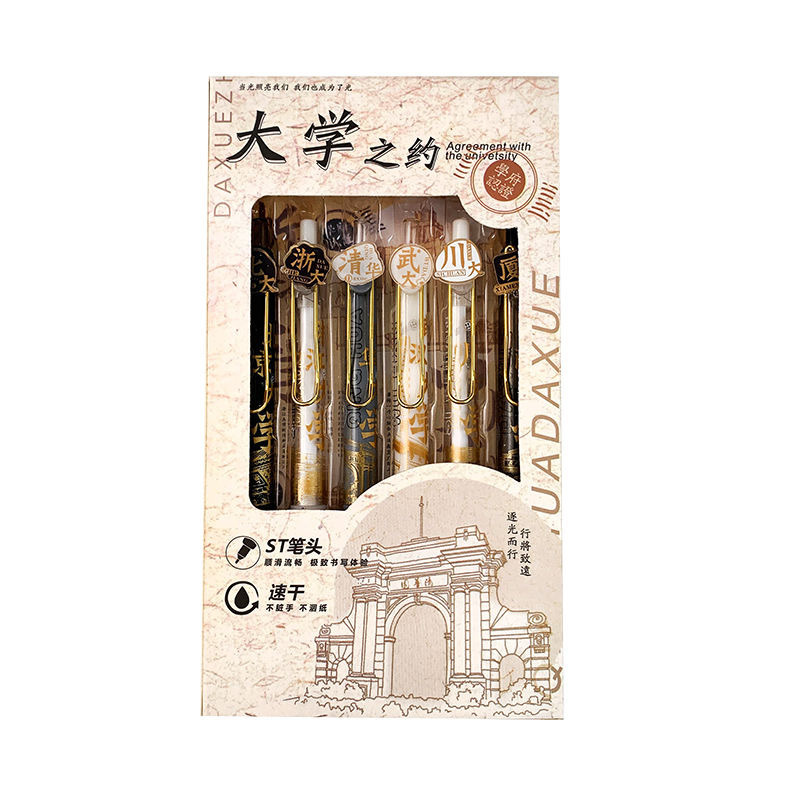 大学之约ins按动笔高颜值中国风刷题笔黑色0.5mm中性笔学生专用笔