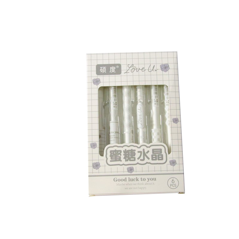 高颜值盒装按动笔6支装按压中性笔套装 创意文具学生考试水笔