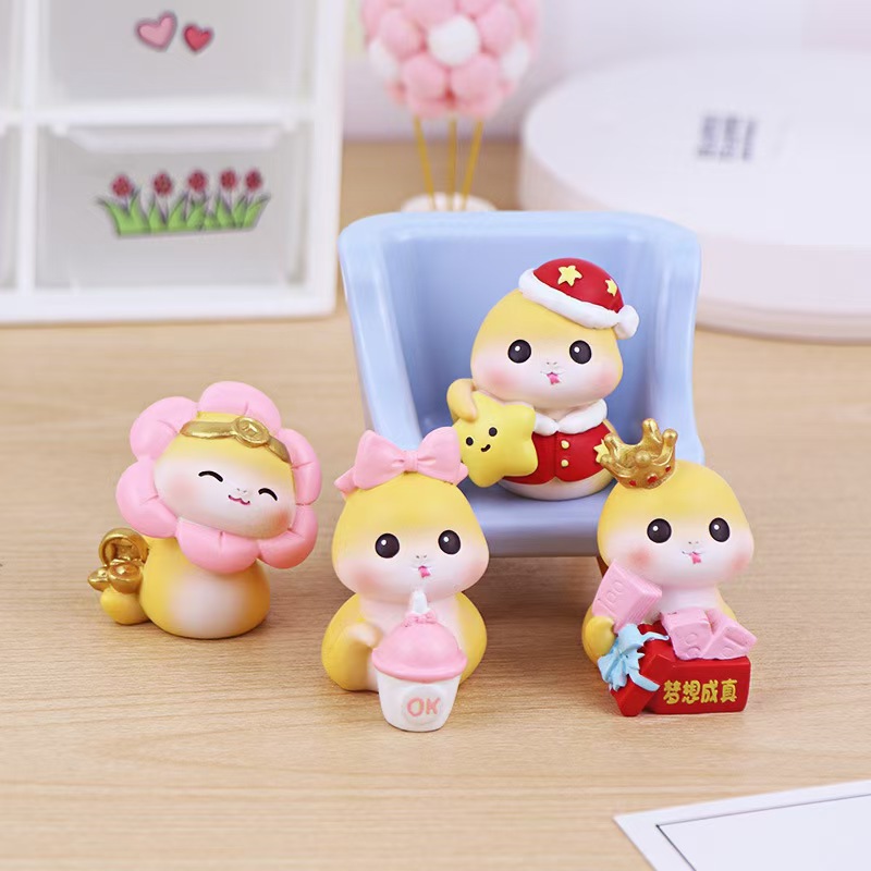 可爱迷你幸运小福蛇桌面摆件创意卡通公仔蛇年吉祥物
