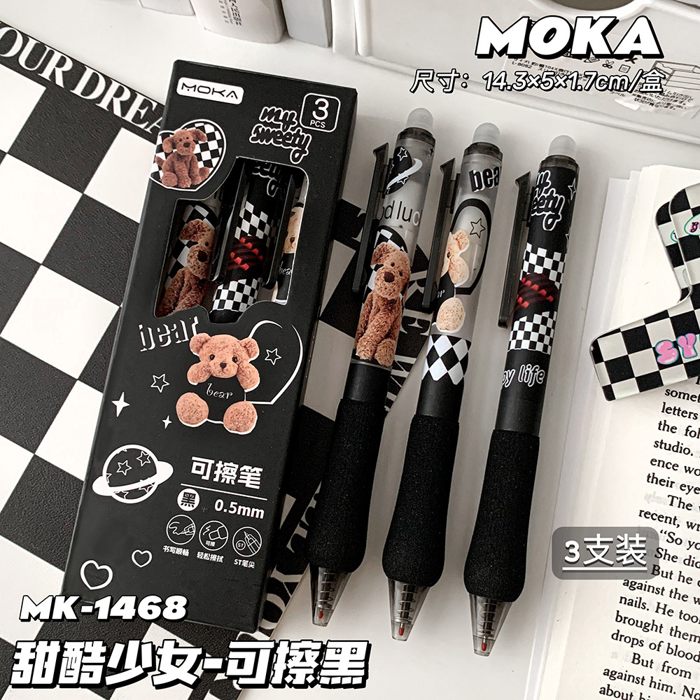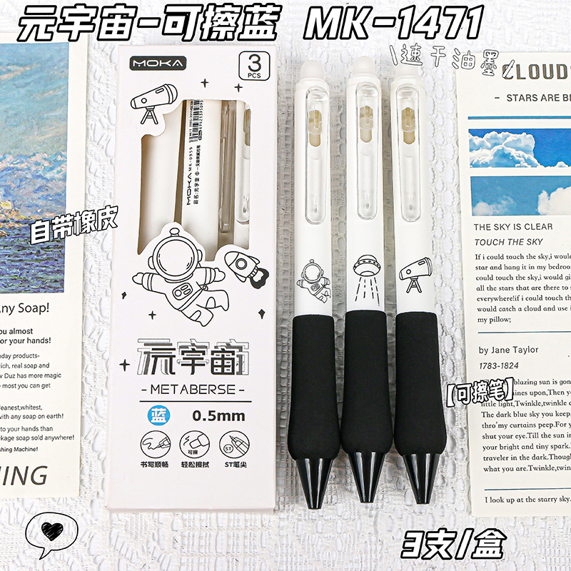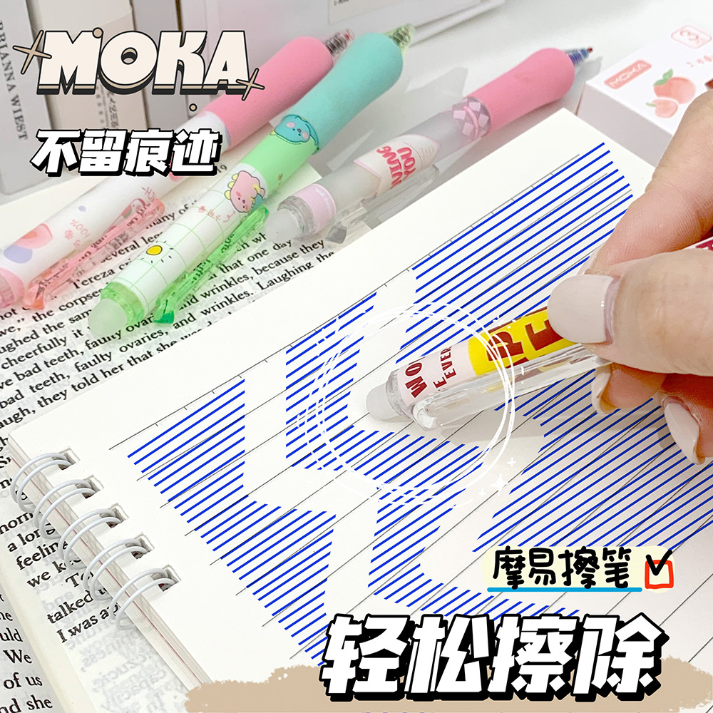 摩易擦晶蓝高颜值盒装按动可擦笔0.5mm学生开学礼物ins可爱中性笔