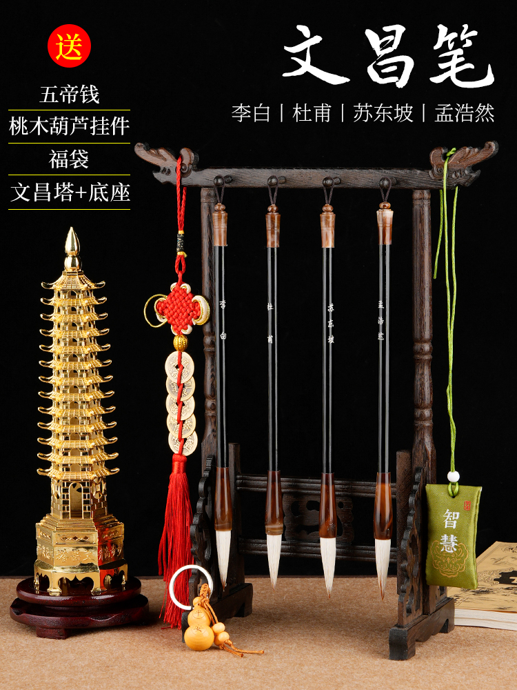 文昌毛笔+4支笔+文昌塔 文昌学生考布文昌位用书桌风水摆件