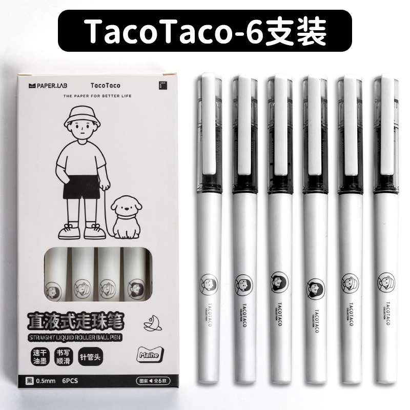 麦和TACOTACO直液式走珠笔速干中性全针管可爱高颜值水笔黑色盒装