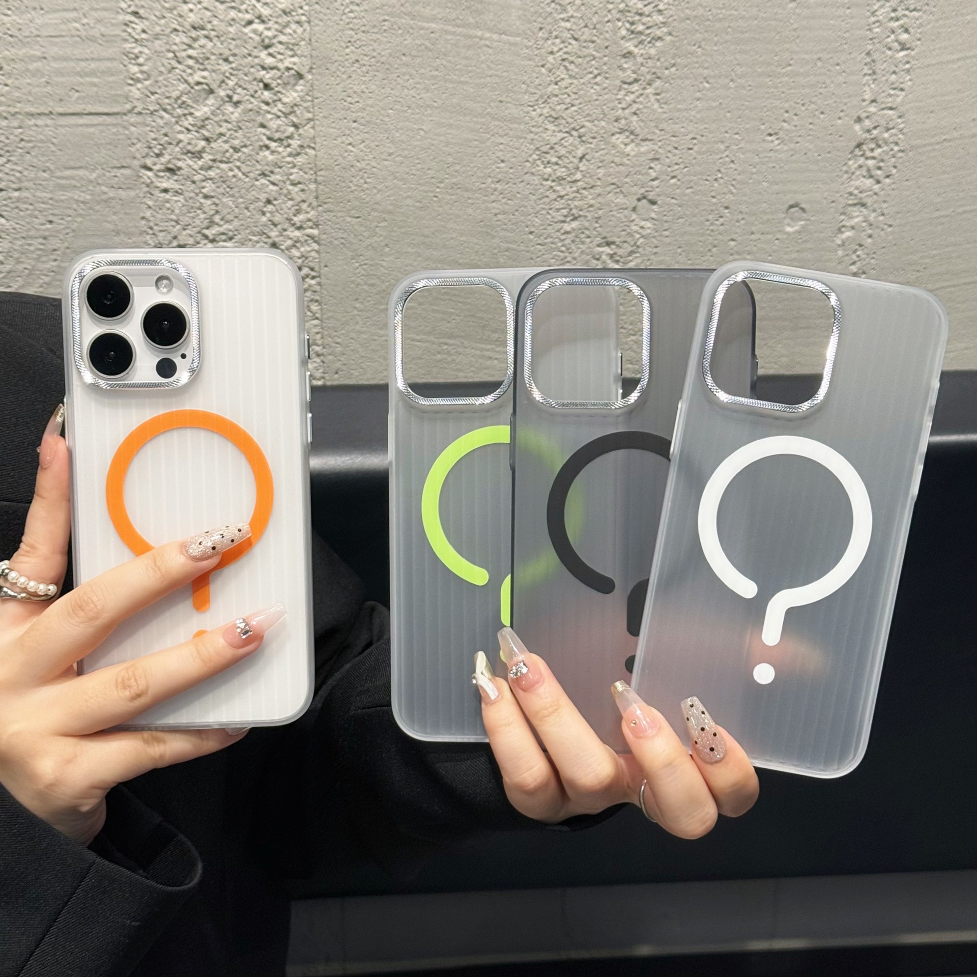 适用苹果16promax手机壳瓦楞肤感磨砂iPhone15磁吸问号超薄保护套