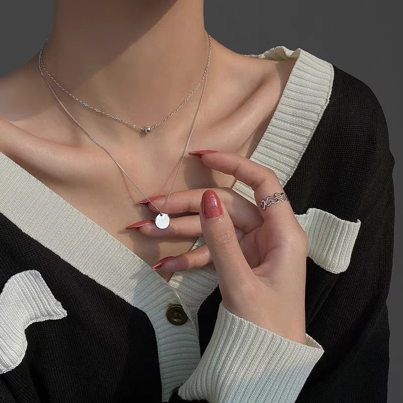 钛钢不掉色简约气质高级感串珠毛衣项链女轻奢小众几何圆牌锁骨链