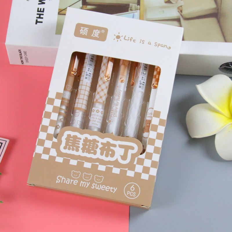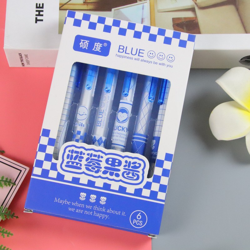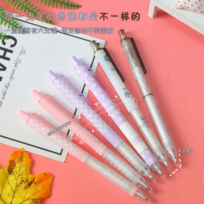 6支ST中性笔盒装 大容量高颜值按动笔 学生速干刷题签字笔圆珠笔