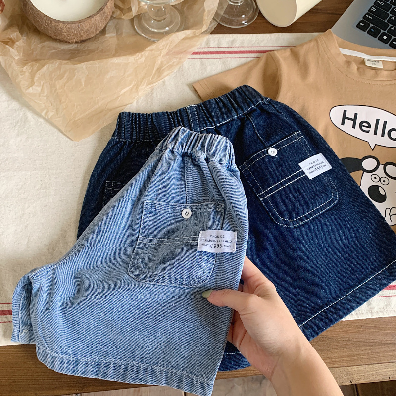 夏季男女童牛仔短裤宝宝洋气儿童个性潮韩版大口袋字母宽松五分裤