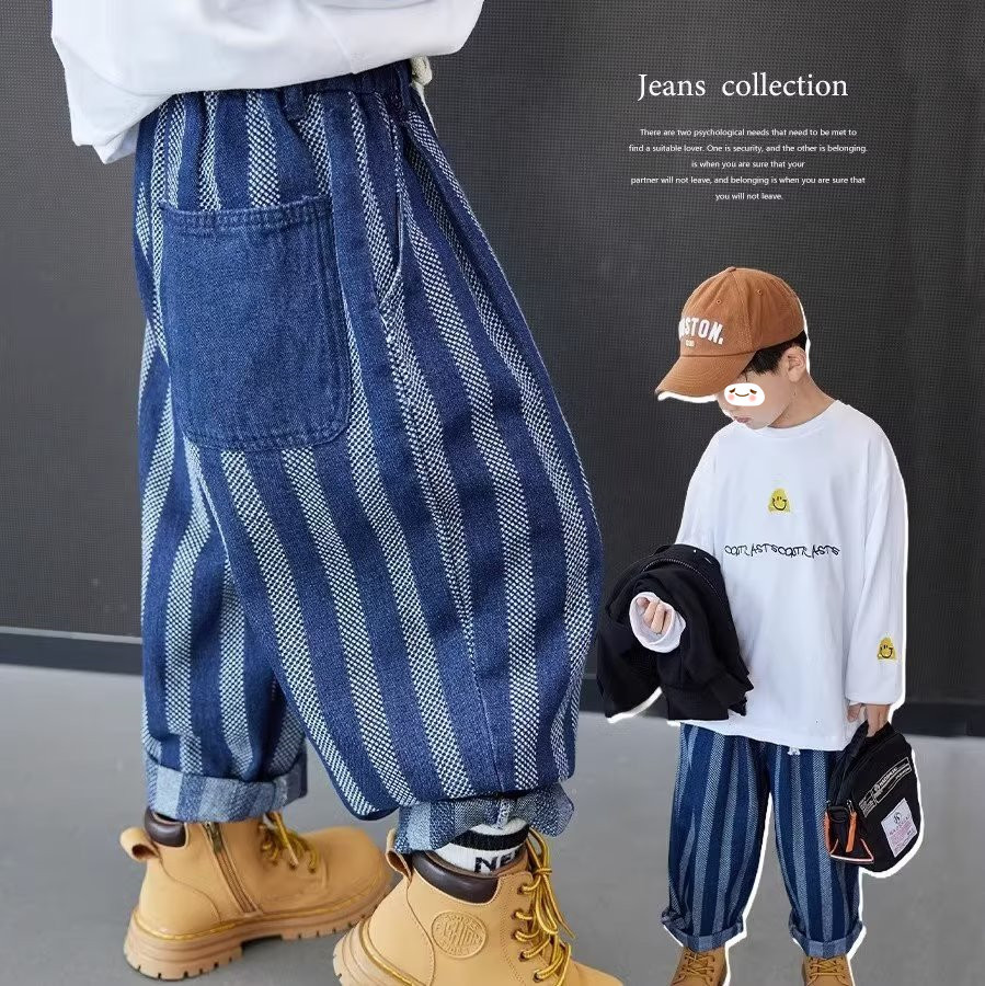 童装男童条纹牛仔裤秋季新款男孩休闲帅气儿童网红百搭潮流款