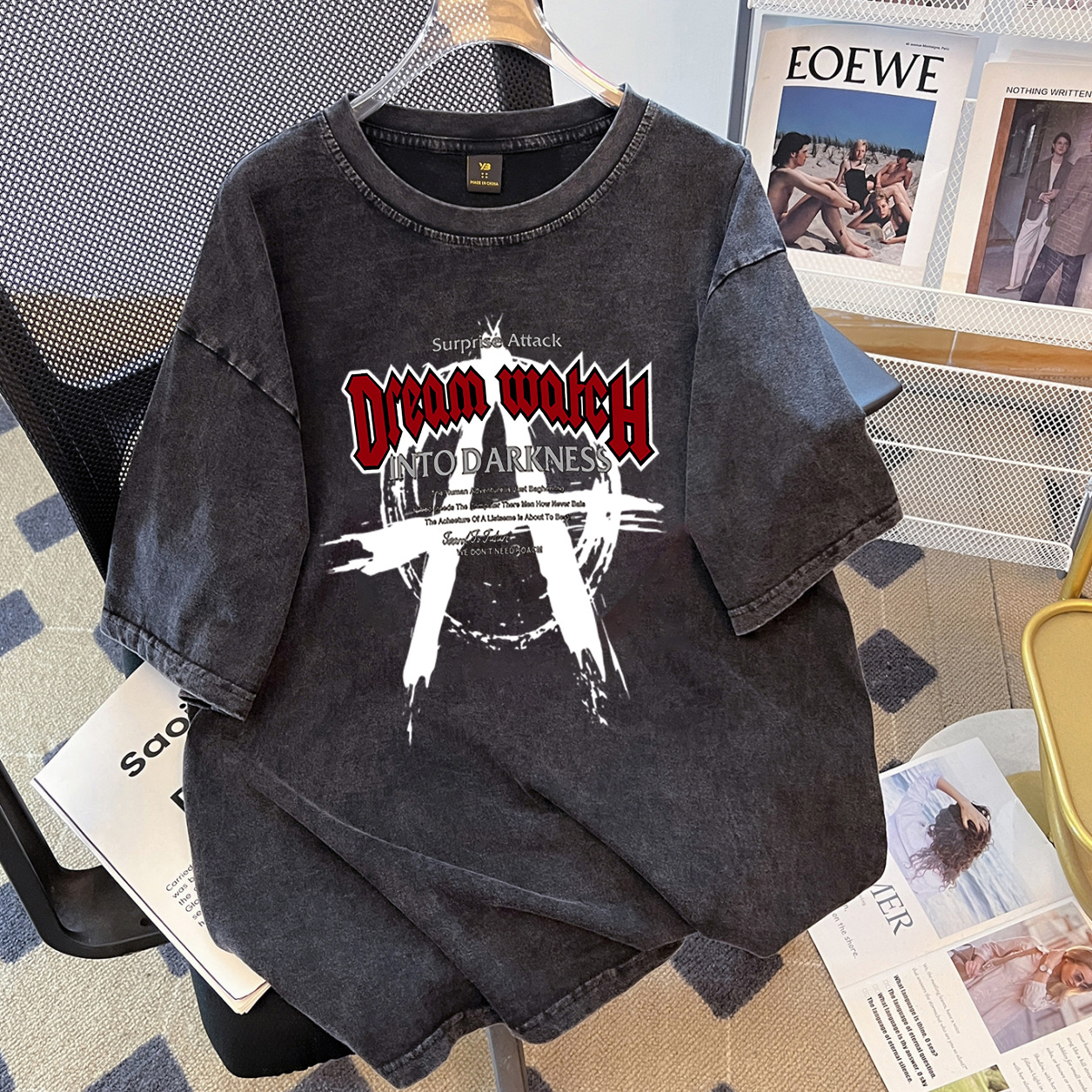 美式ins复古潮牌设计感字母印花纯棉短袖t恤男女春夏宽松情侣上衣
