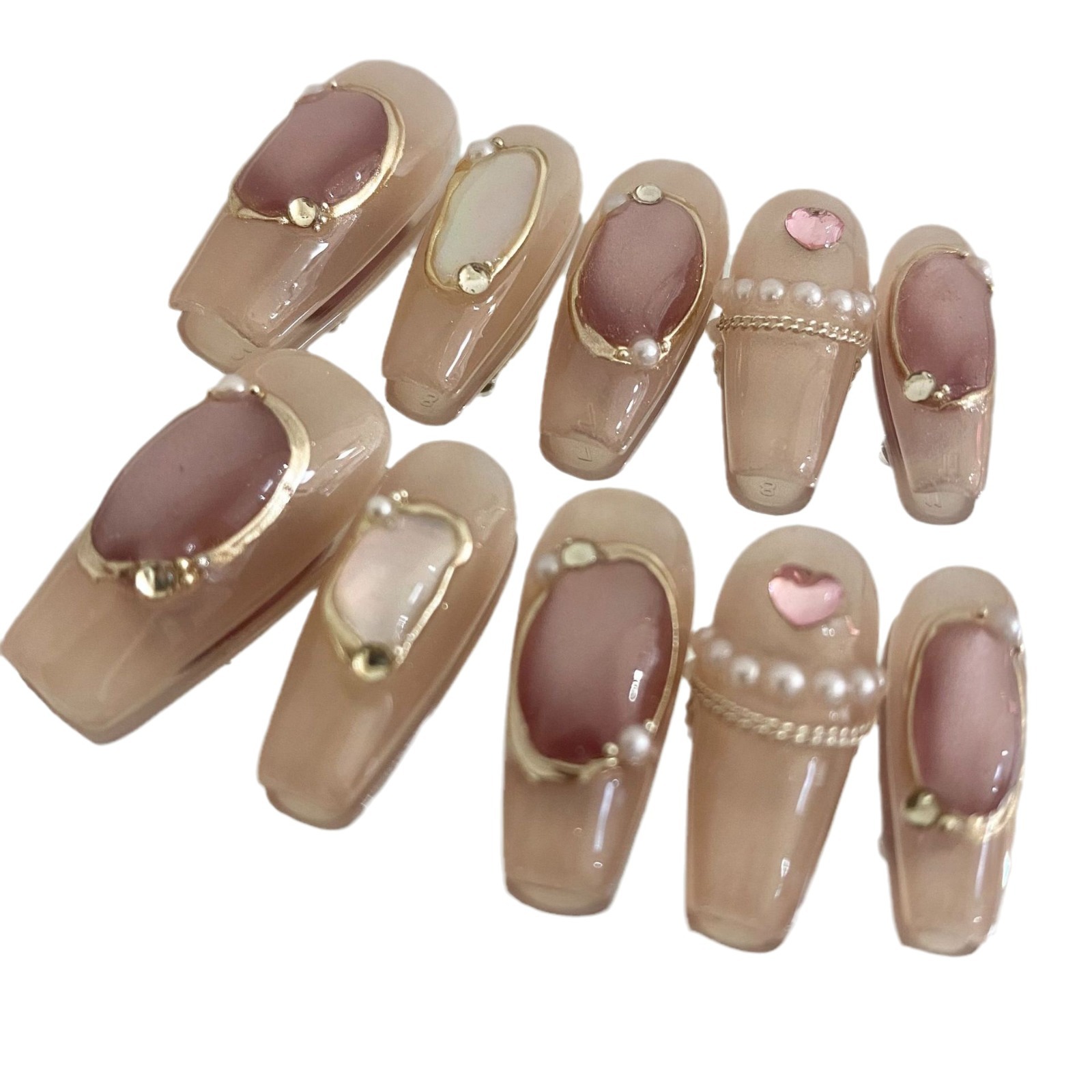 纯手工穿戴甲春季新款显白镶钻气质显白轻奢光疗美甲【索马里海】