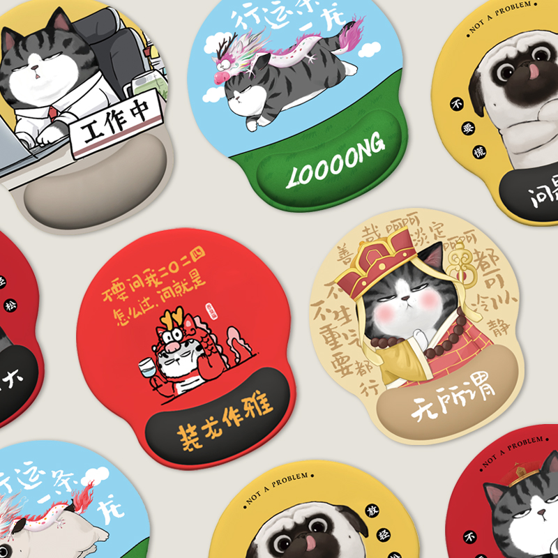 吾皇猫巴扎黑鼠标垫护腕垫加厚防滑硅胶工作办公室宿舍手托高级感