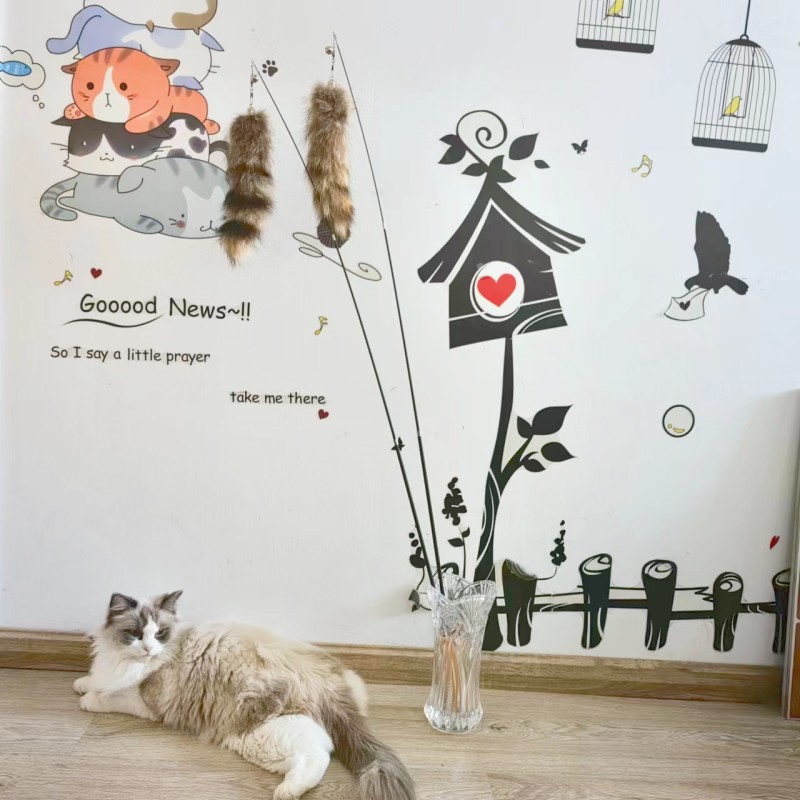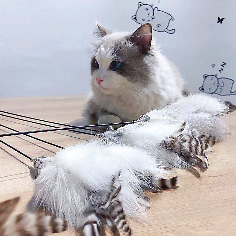 猫玩具新款逗猫棒 轻奢狐狸毛+羽毛铃铛逗猫玩具互动宠物用品