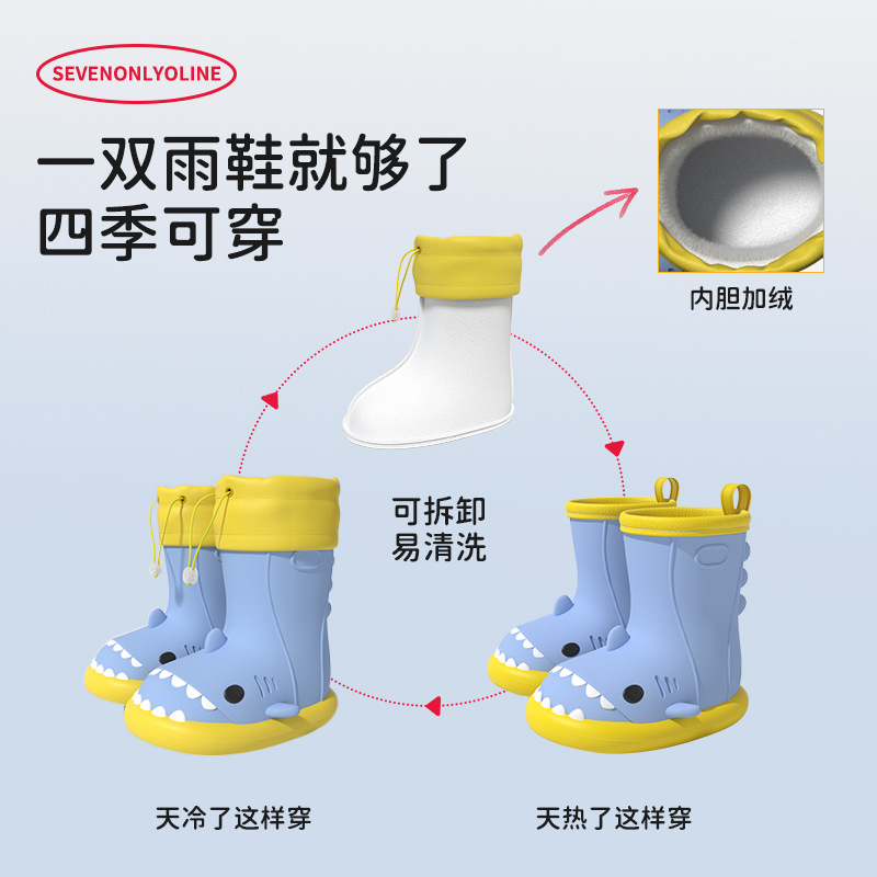 卡通鲨鱼儿童雨鞋男女童小孩秋冬加绒宝宝雨靴幼儿小学生水鞋