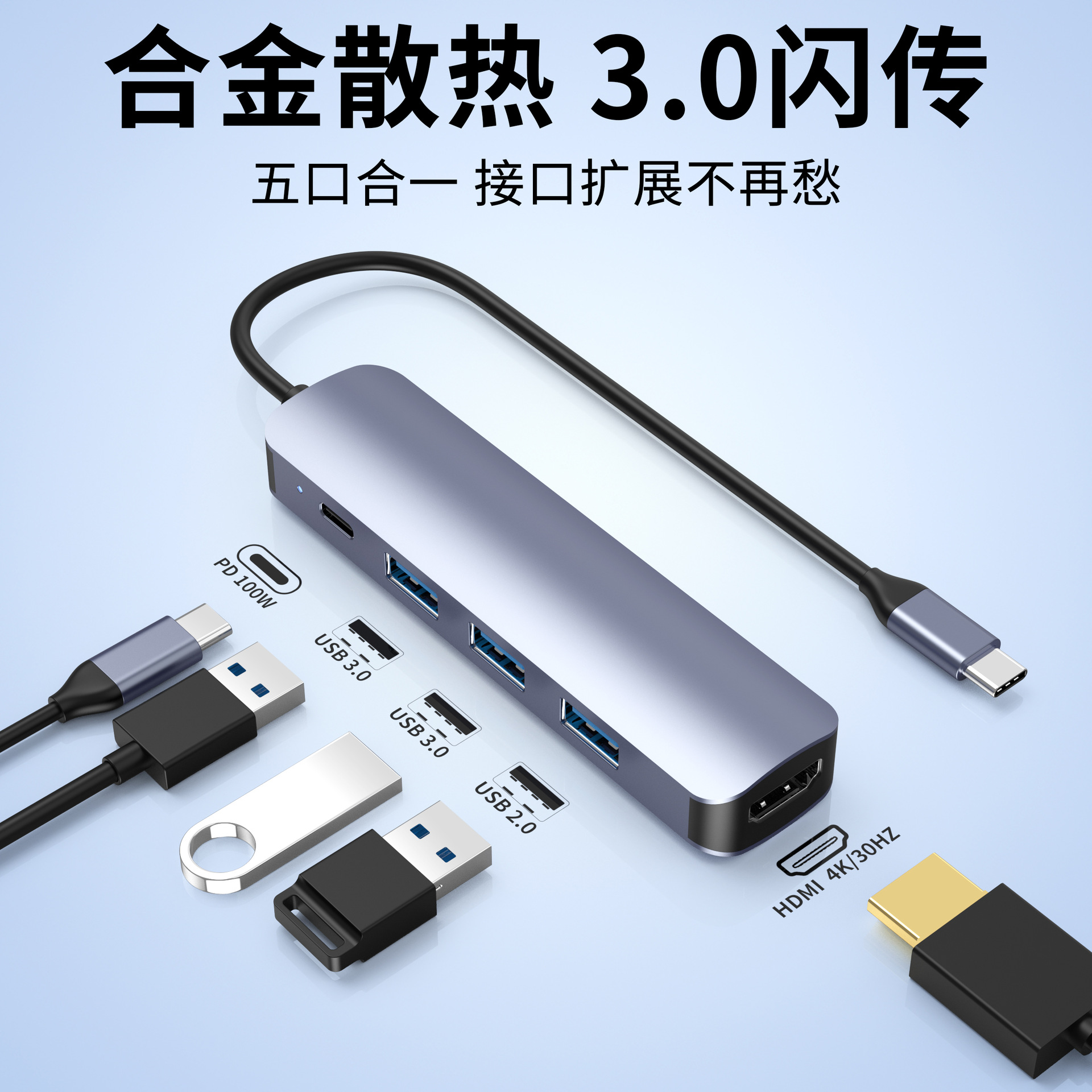 typec扩展坞usb3.0转HDMI转接头4K投屏转换器PD充电拓展坞五合一