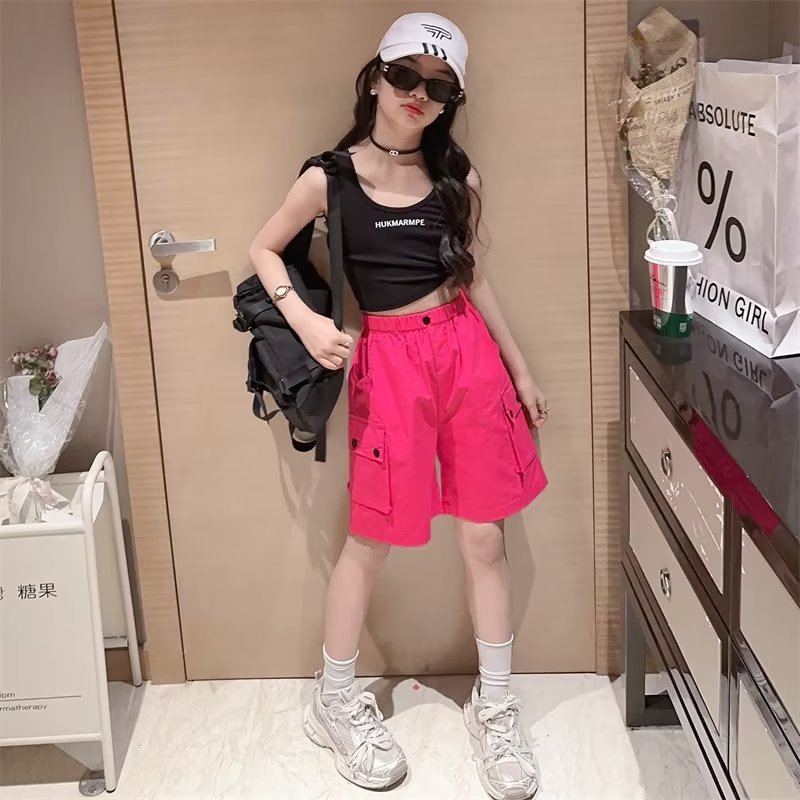 女童裤子夏季薄款休闲裤新款女孩炸街中裤中童夏季五分工装裤