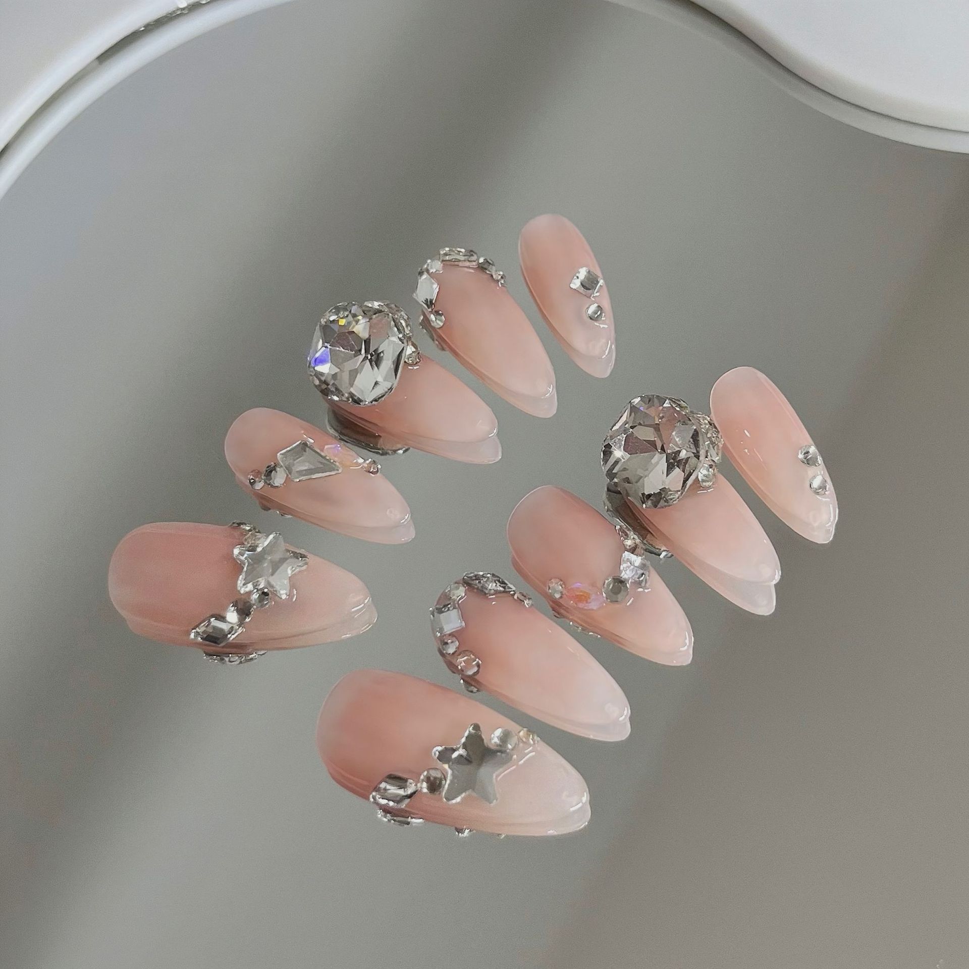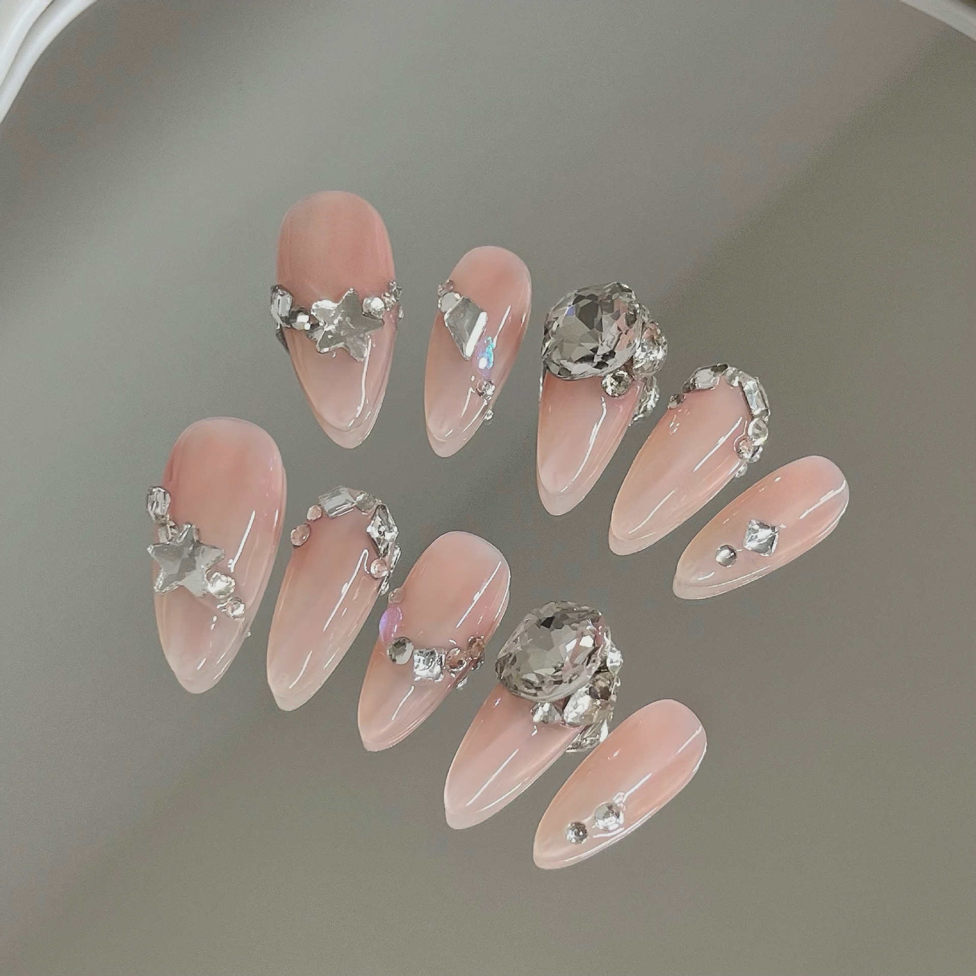 穿戴甲K9碎钻高级感大钻石堆钻美甲纯手工穿戴甲片可拆卸穿戴甲