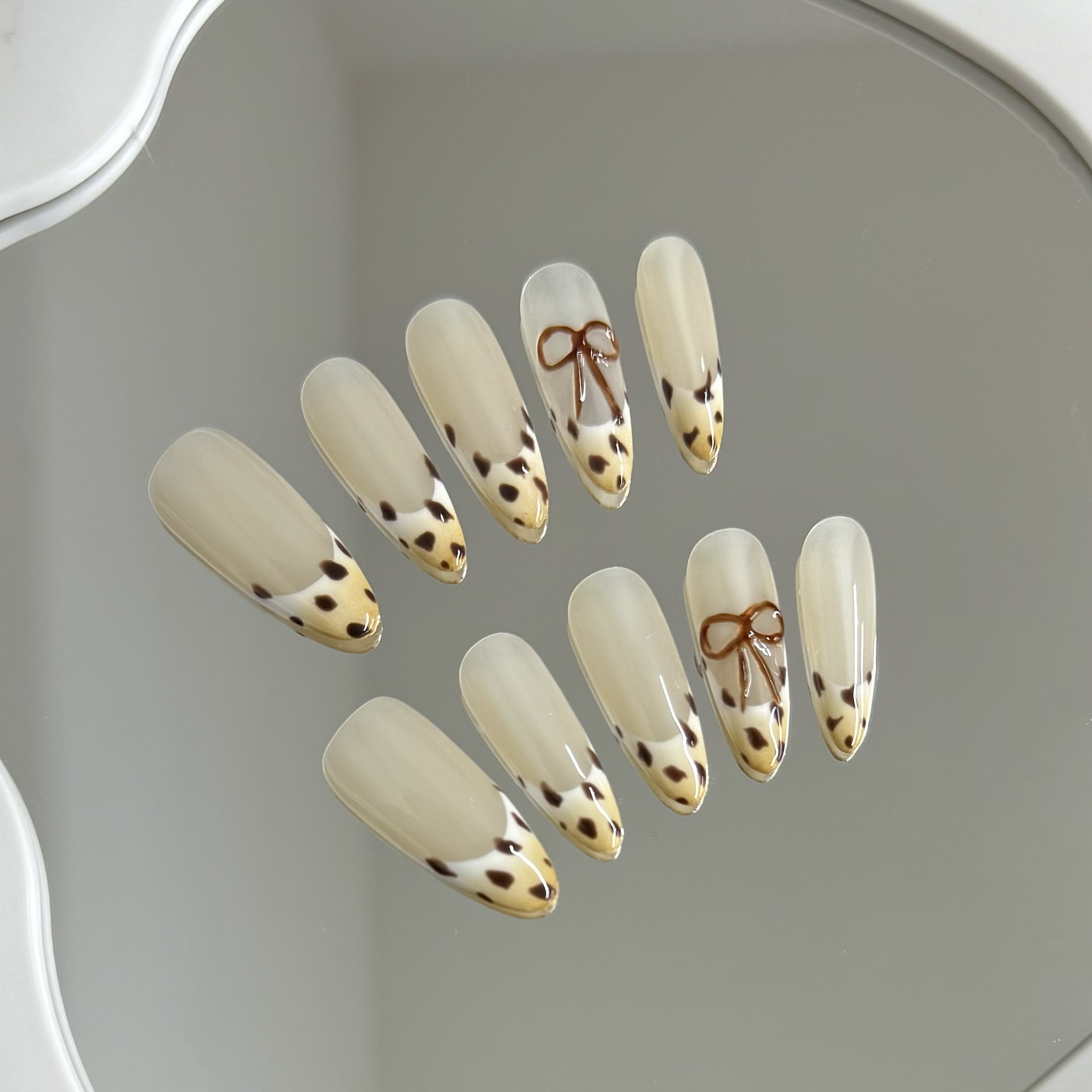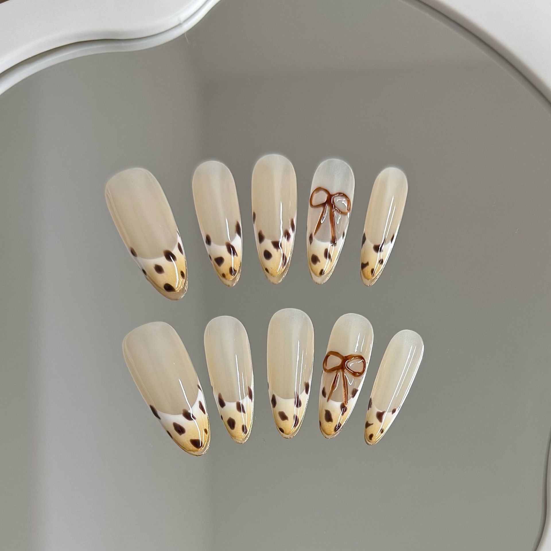 手工穿戴甲甜辣温柔可爱法式简约手绘蝴蝶结美拉德显白成品美甲贴