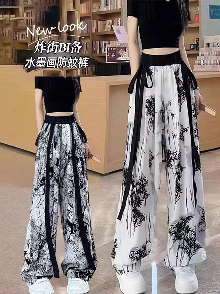女童夏装裤子新款洋气时髦冰丝阔腿裤女孩大童夏季薄款防蚊裤