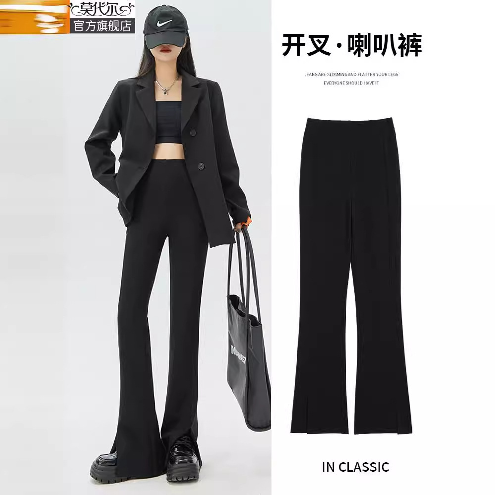 开叉微喇叭裤子女春秋冬新款高腰垂感拖地显瘦加厚黑色马蹄裤