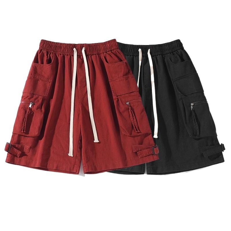 美式拉链工装短裤女夏季新款宽松日系薄款情侣外穿运动阔腿五分裤