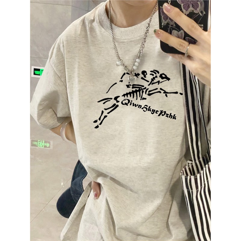 夏季纯棉短袖t恤女新款爆款设计感小众美式宽松情侣装上衣