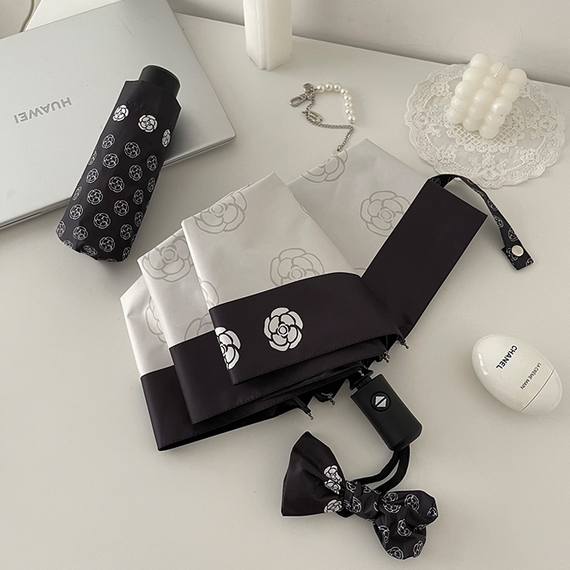 复古小香风ins全自动晴雨伞两用法式折叠太阳伞防晒遮阳伞女