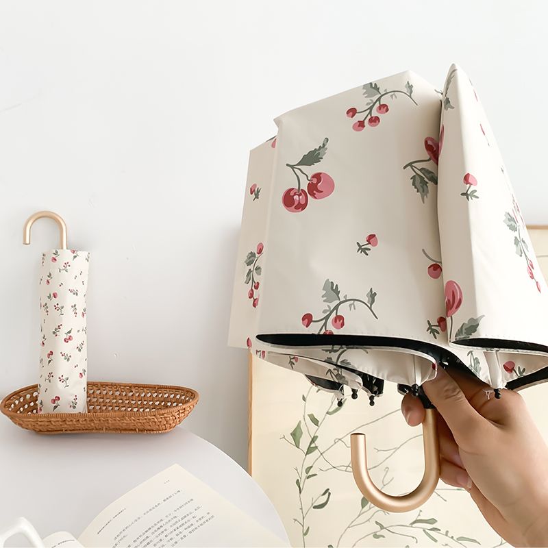 复古弯钩太阳伞防晒防紫外线便携黑胶小巧折叠遮阳手动晴雨两用-