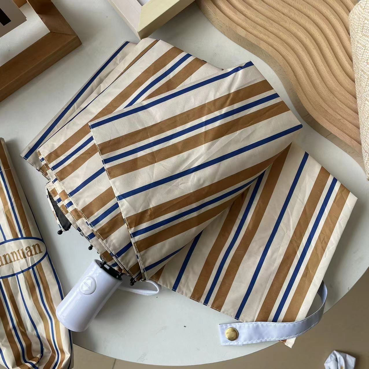 美式复古条纹高颜值雨伞女折叠晴雨两用防晒紫外线抗风太阳伞ins