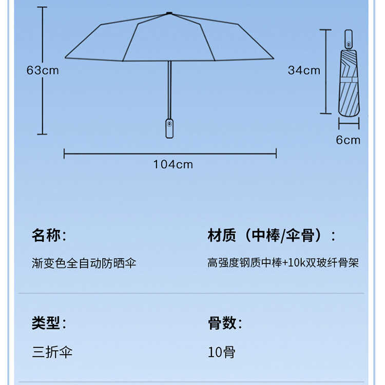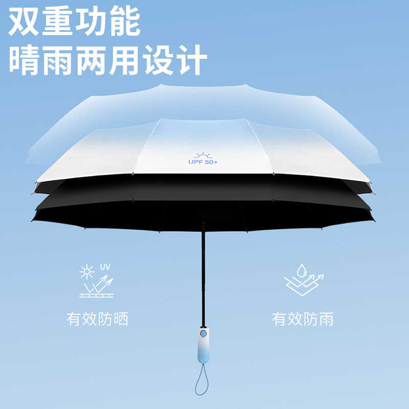 全自动渐变色三折雨伞防晒黑胶防晒学生折叠晴雨两用伞女士遮阳伞