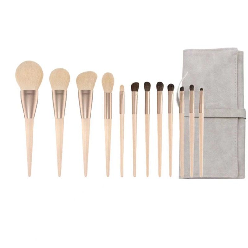 12支莫兰迪马毛化妆刷眼影刷修容刷散粉刷腮红刷动物毛初学者套装
