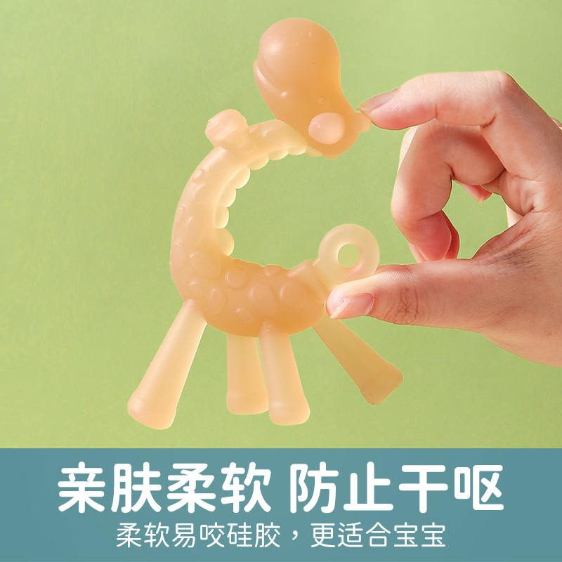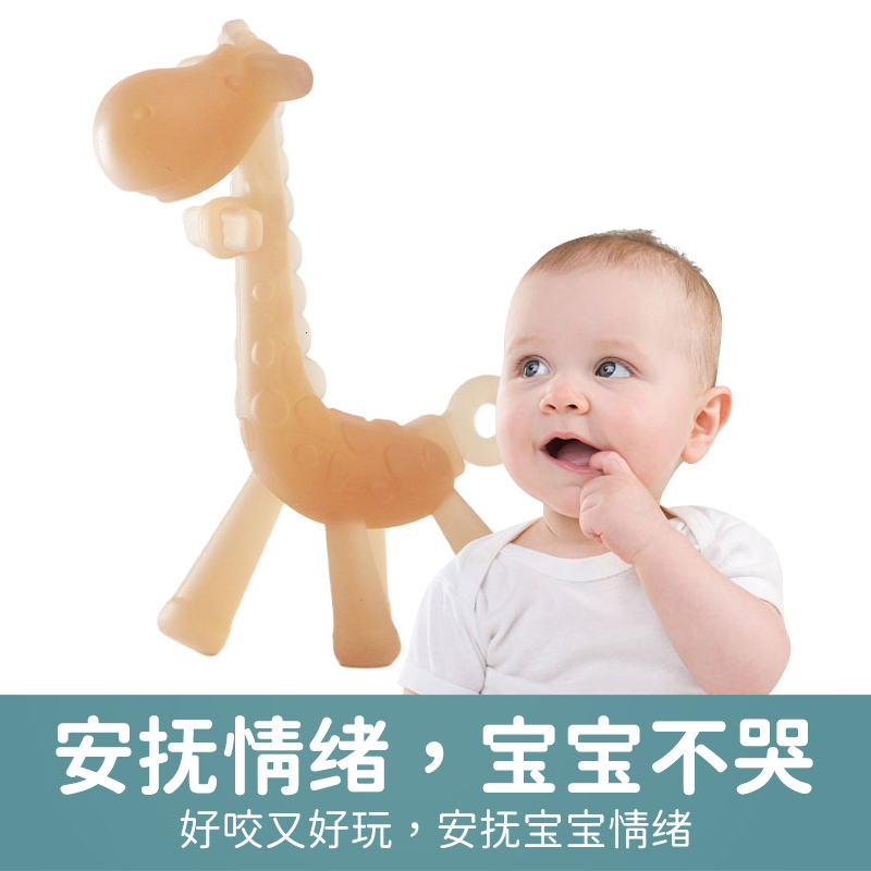 牙胶婴儿磨牙棒水煮食品级硅胶长出牙期防吃手安抚长颈鹿牙胶