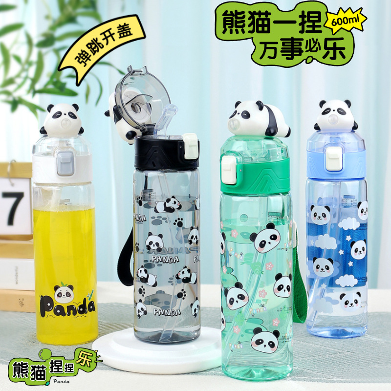 可爱泡泡捏捏乐吸管杯水杯上学便携学生太空杯户外运动提绳杯