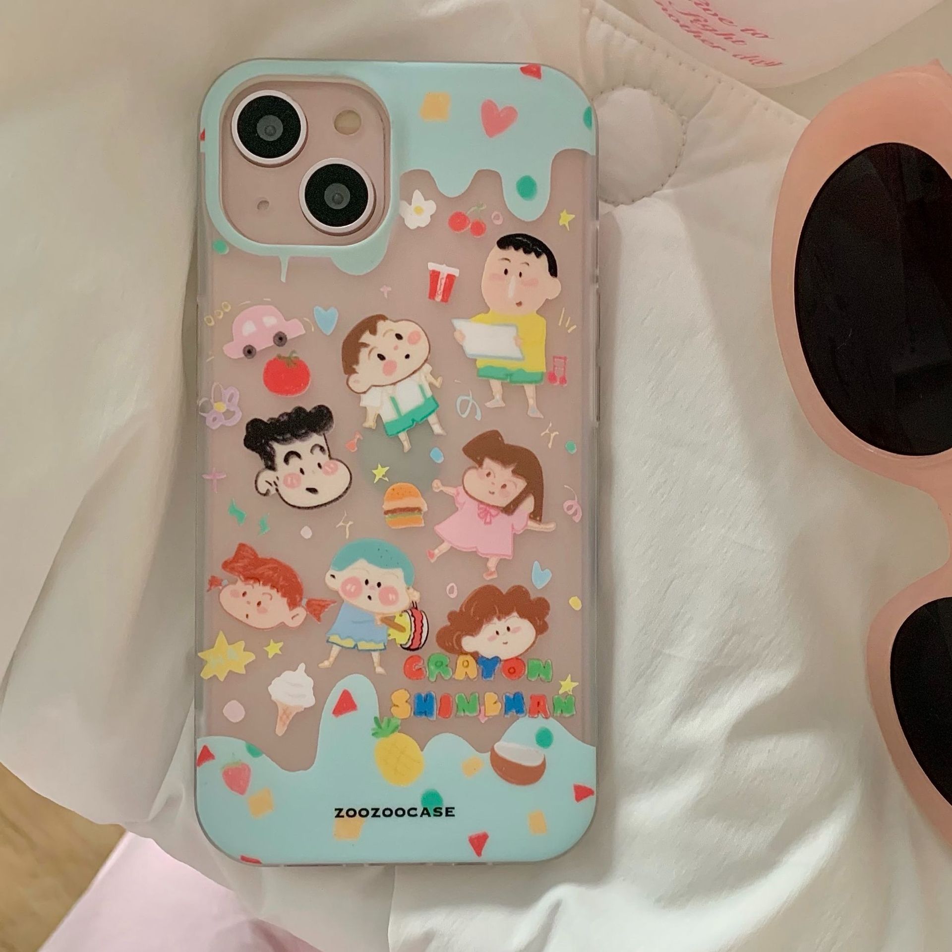 日韩ins涂鸦蜡笔小新适用15Promax手机壳双层14pro苹果13防摔12女
