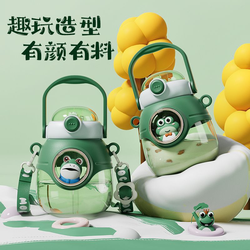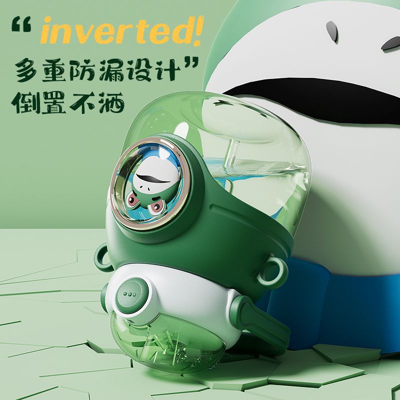 高颜值儿童塑料杯太空舱大容量吸管水杯学生便携杯子