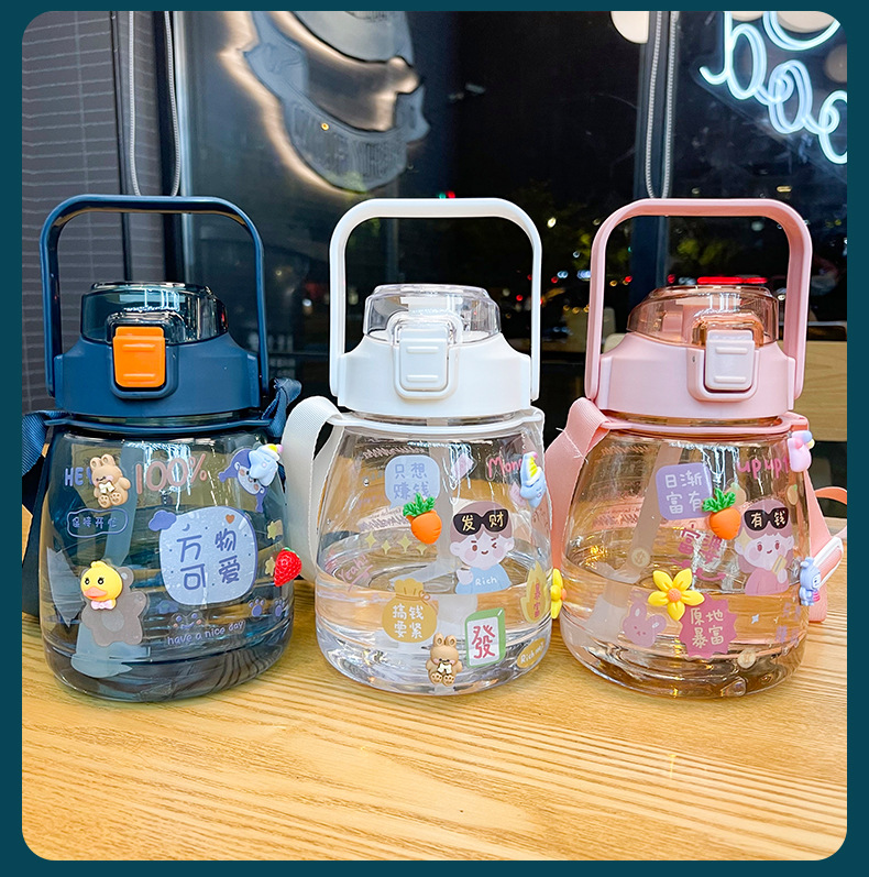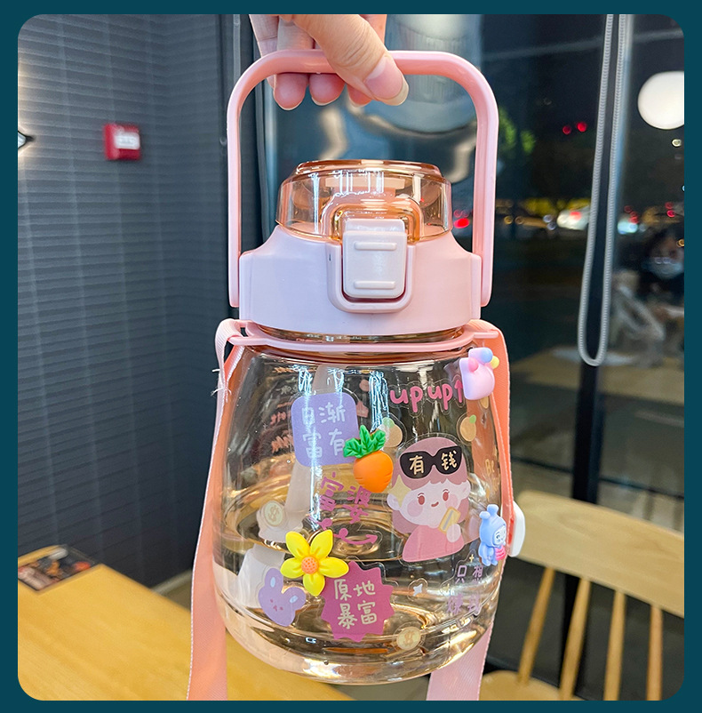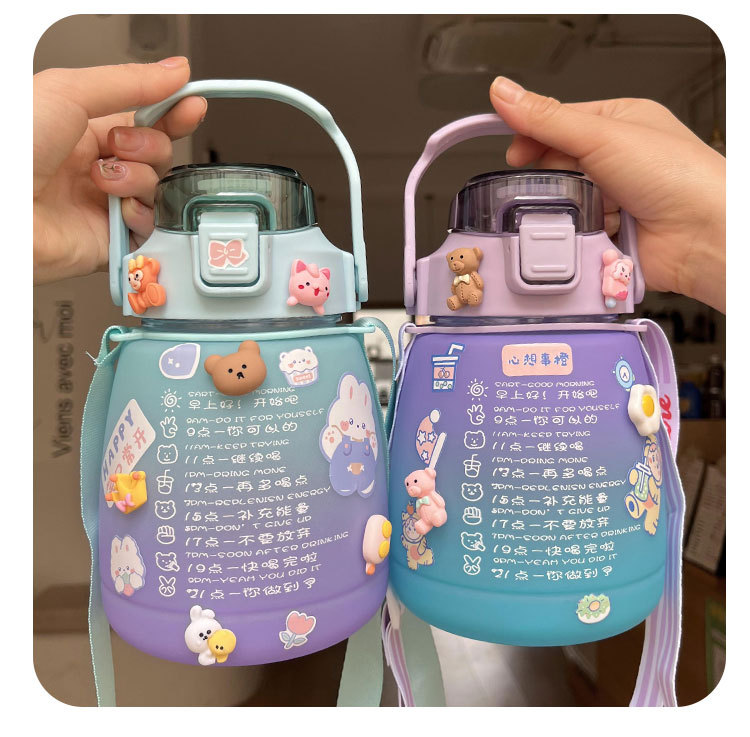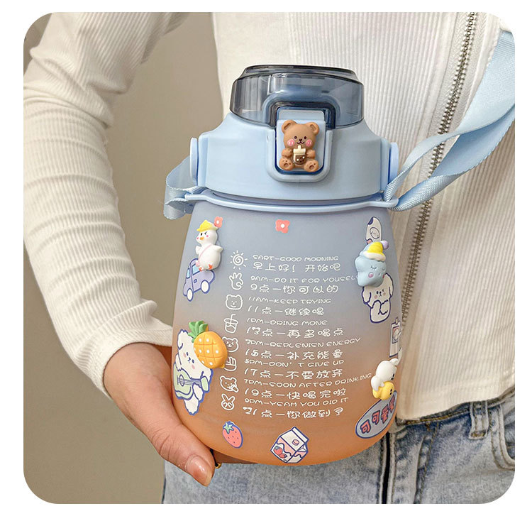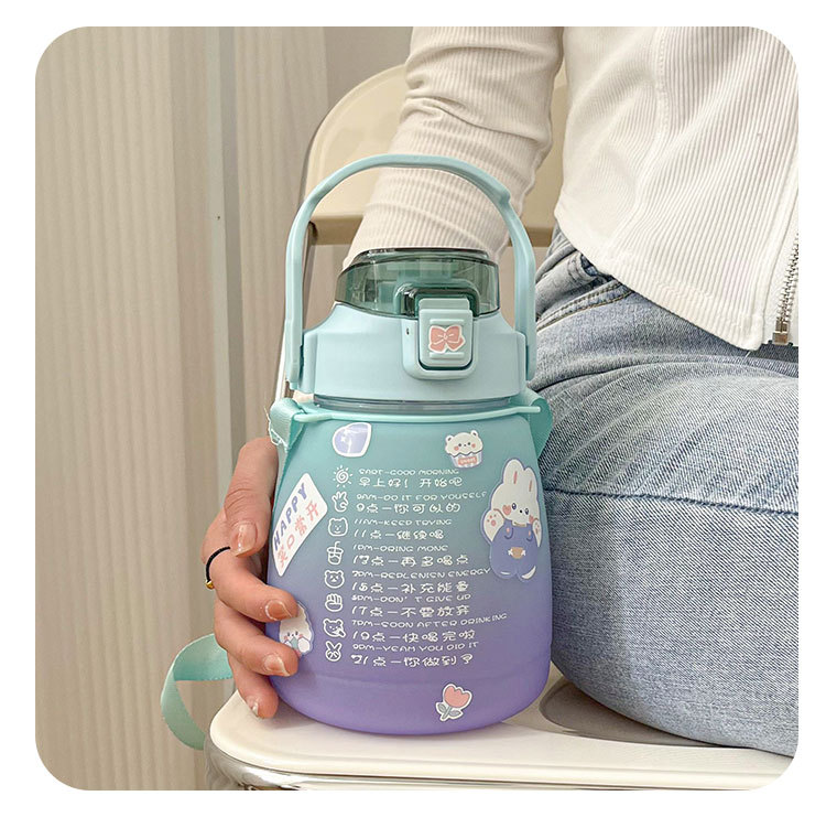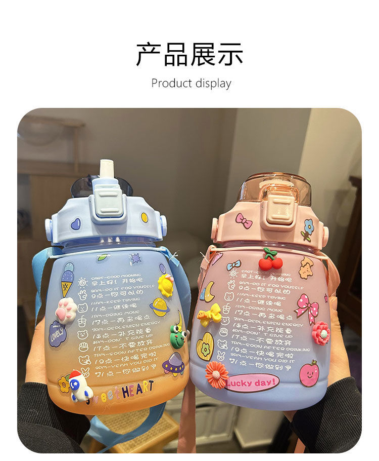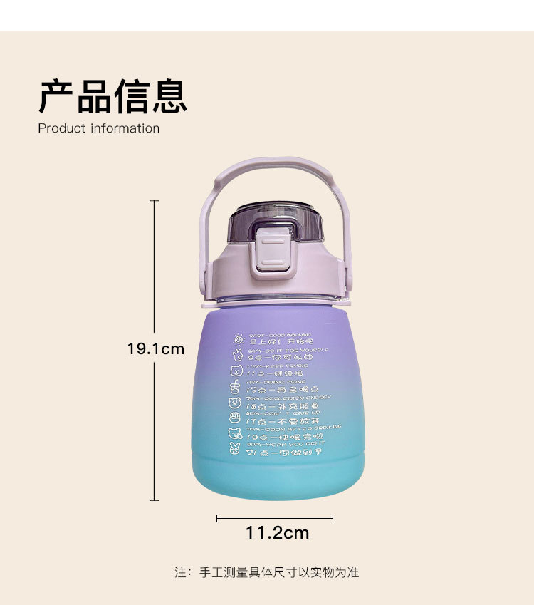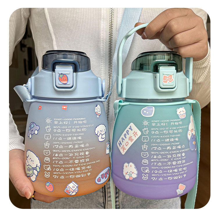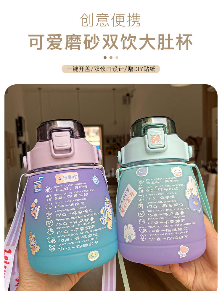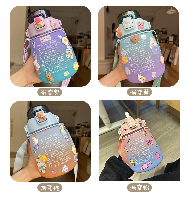 塑料大水杯大容量女生高颜值儿童小学生水壶水瓶吸管渐变大肚杯子
