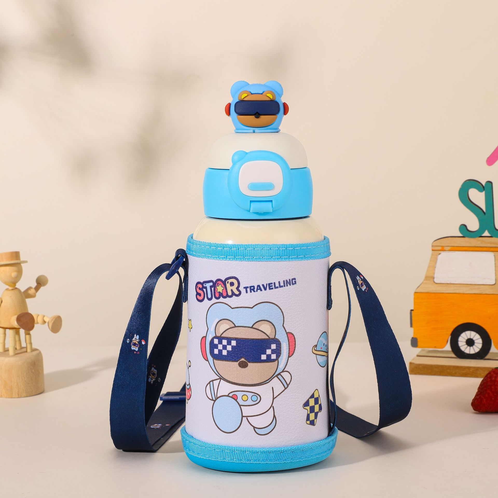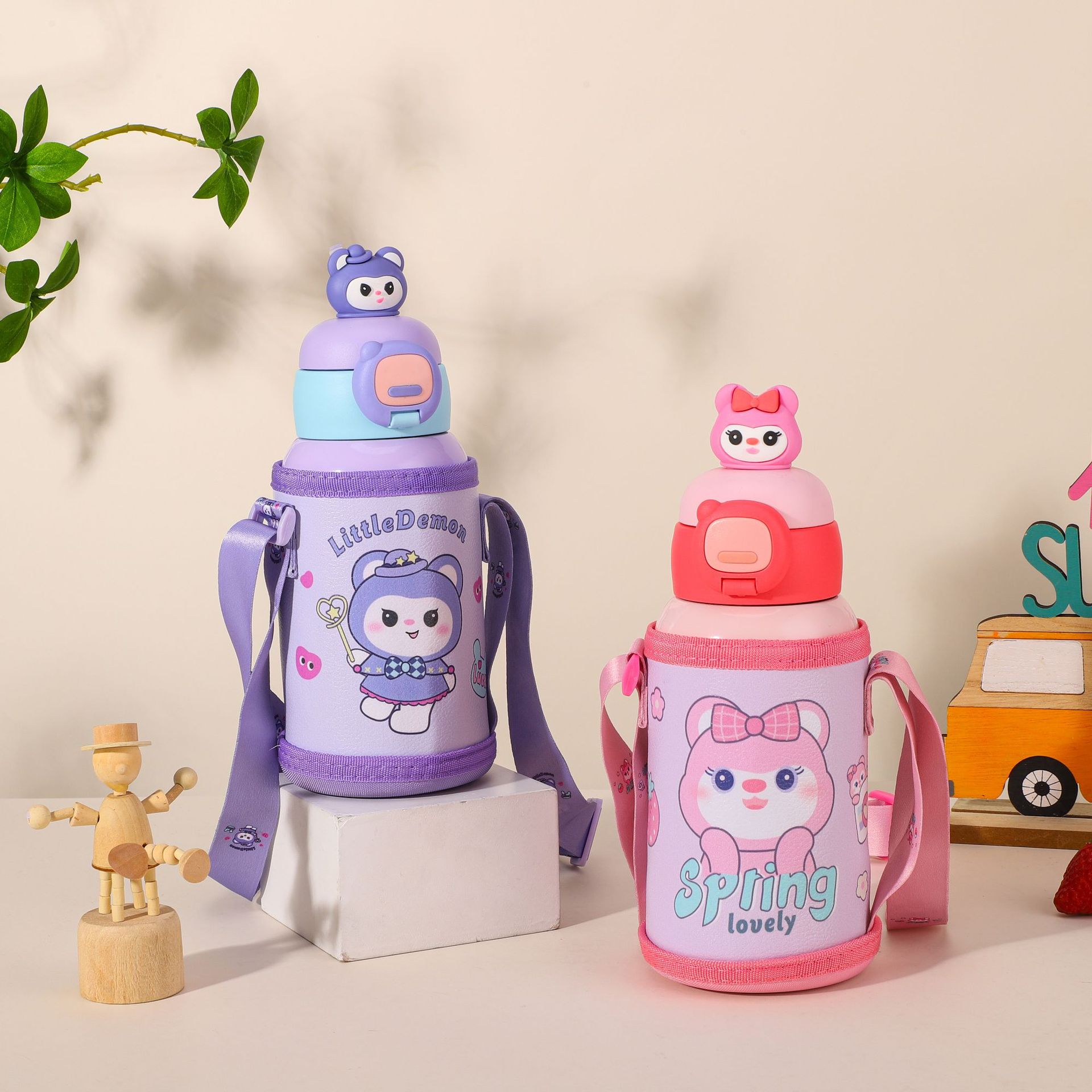 316不锈钢儿童保温壶可爱双饮保温杯带吸管杯儿童水杯