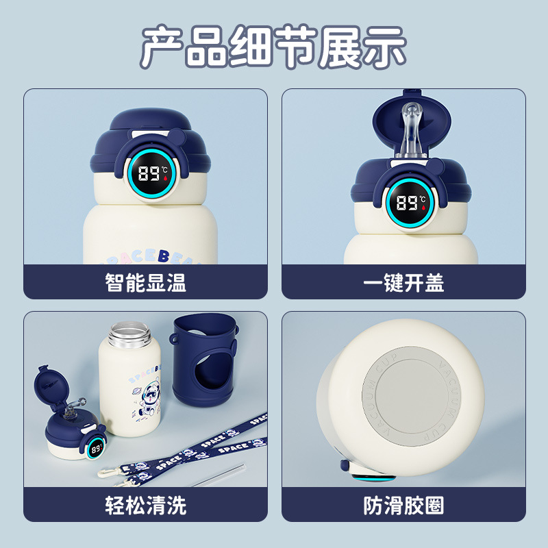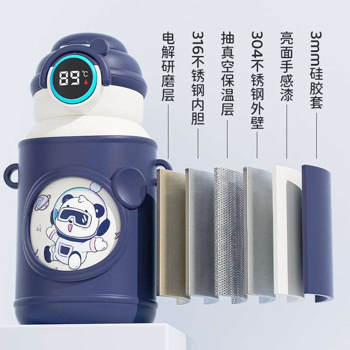 太空熊儿童保温杯316不锈钢儿童水杯防摔保温保冷学生吸管杯子