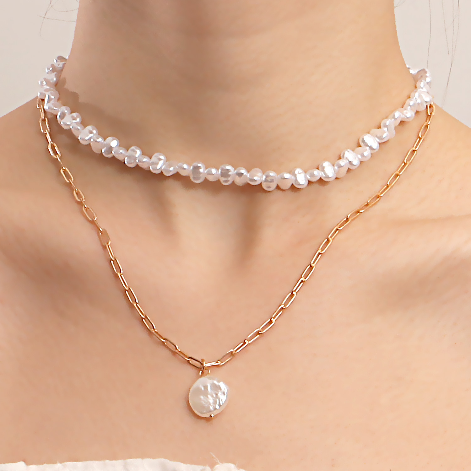 潮酷双层异形仿珍珠项链女 锁骨链百搭项饰品