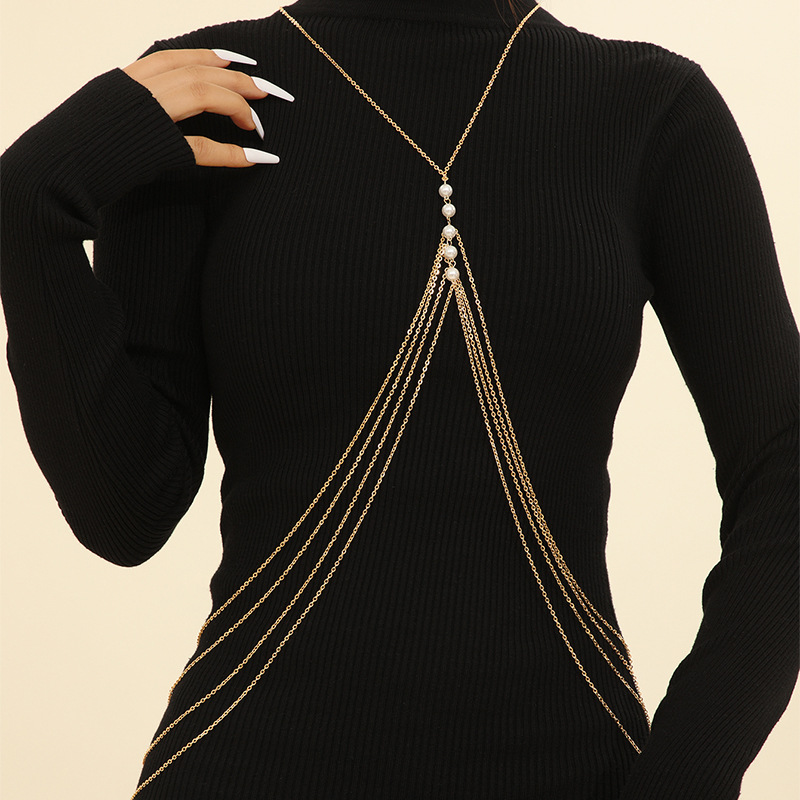 热销时尚夸张个性胸链沙滩风珍珠多层流苏潮流女式身体链