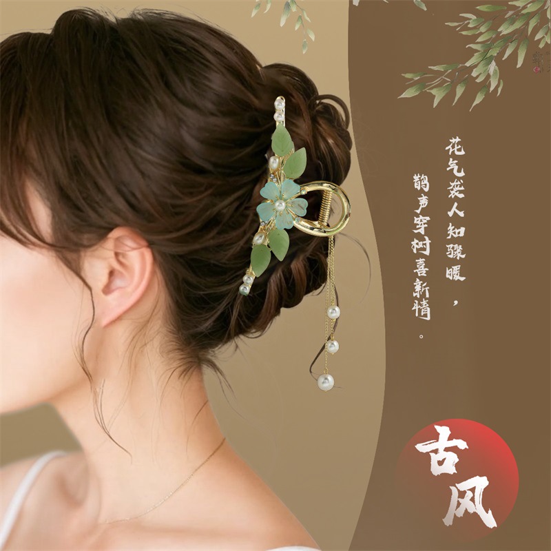 古风流苏发夹女后脑勺大号汉服盘发鲨鱼夹子新中式双面抓夹头饰品