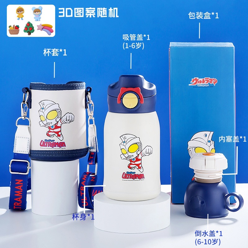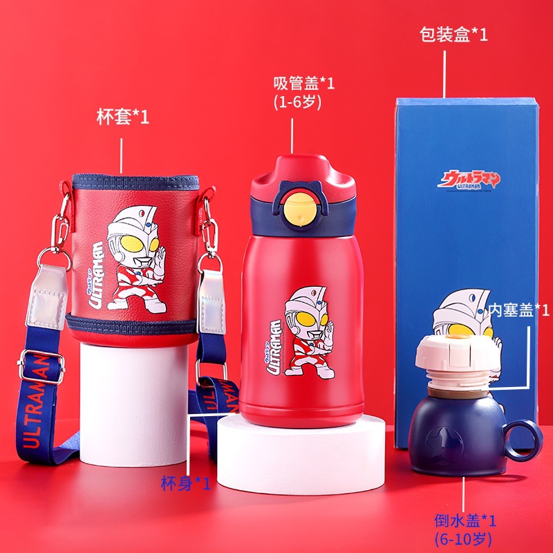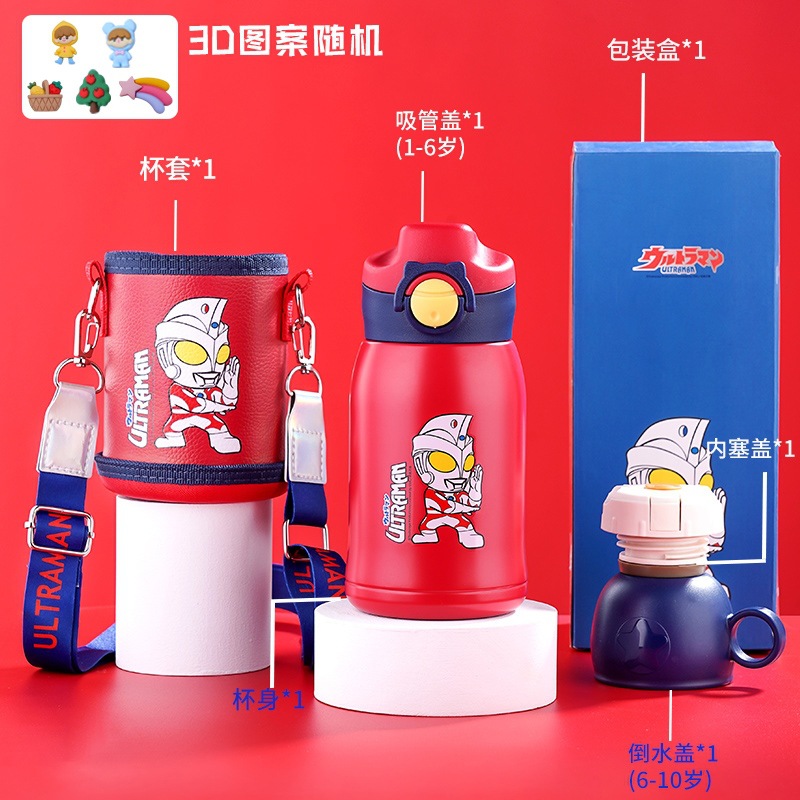 奥特曼保温杯儿童防摔学生水杯上学水壶幼儿园男孩杯子带吸管