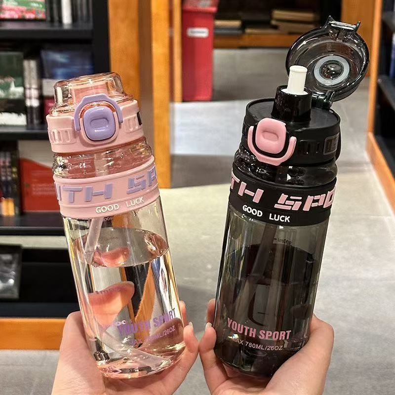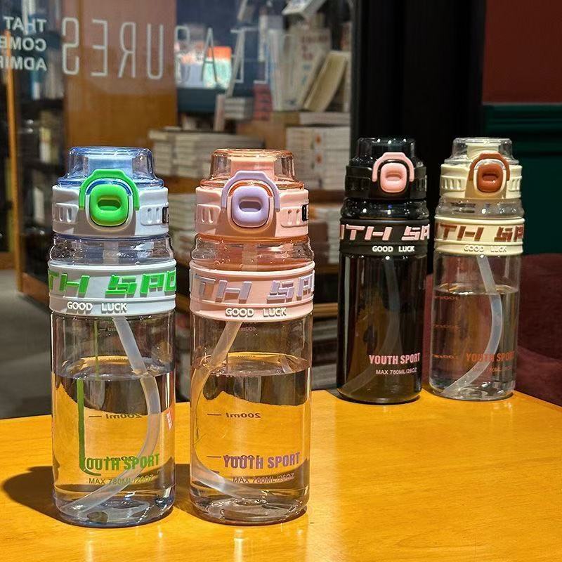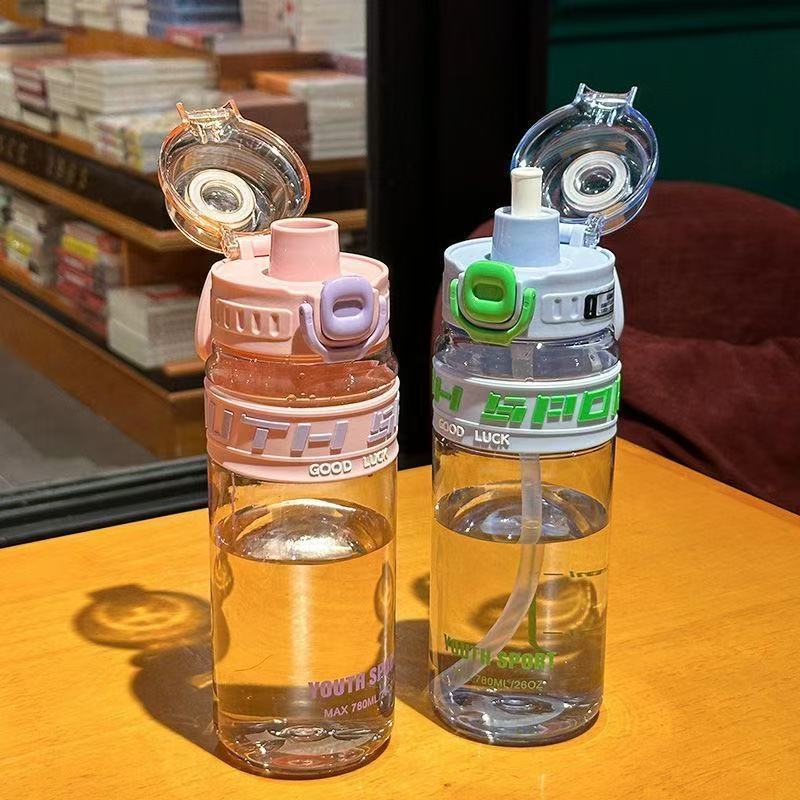 夏季运动双饮吸管儿童水杯简约高颜值学生男女生耐高温塑料杯便携